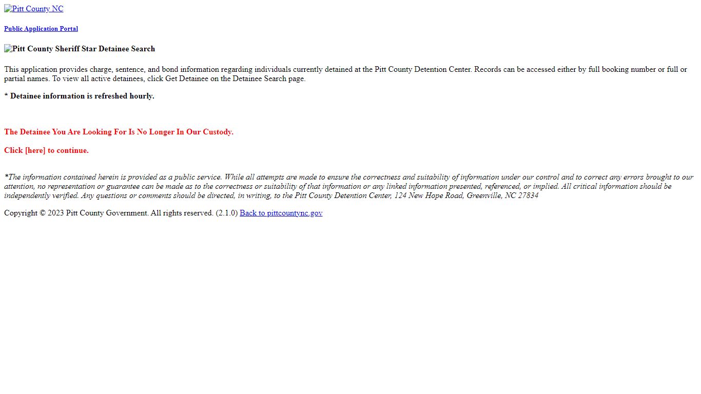 https://apps.pittcountync.gov/apps/detention/detainee/DetaineeDetail.aspx?selDetainee=400750 Detainee Search
